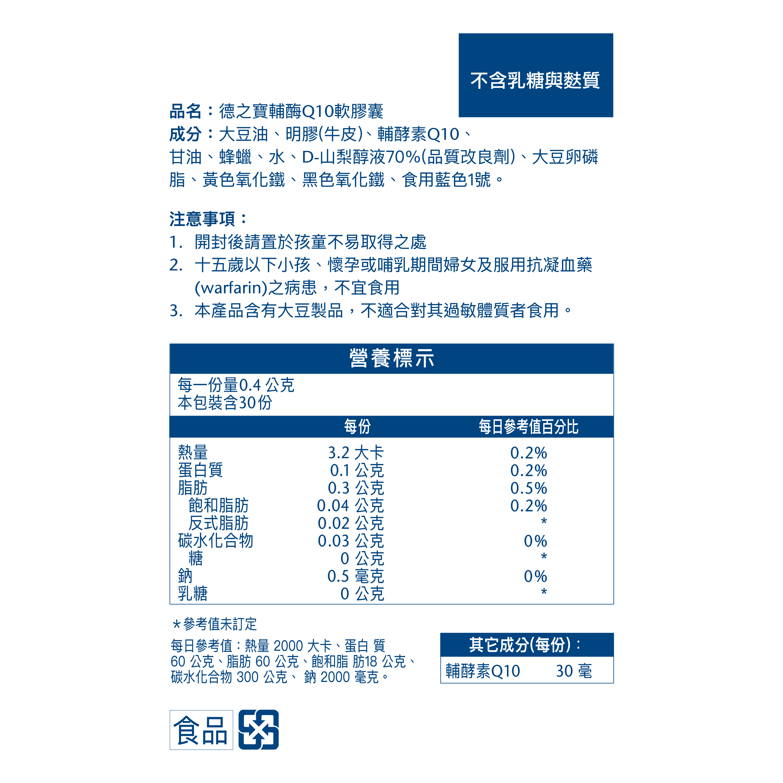 ◆ 輔酶Q10每粒含有30毫克