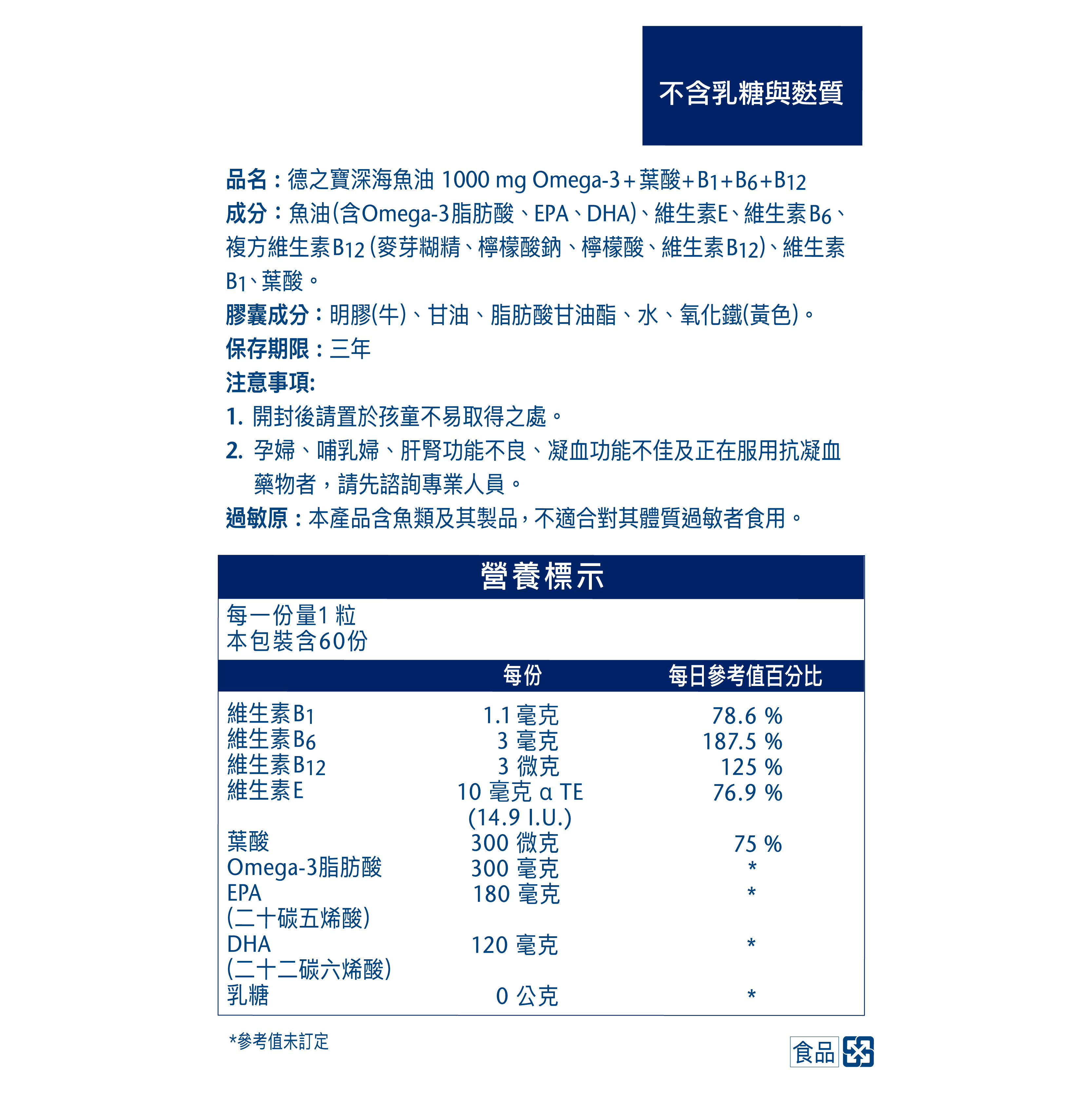 深海魚油1000mg Omega-3+葉酸+安神B群|德之寶台灣官方直營店(德國雙心)_網路獨家