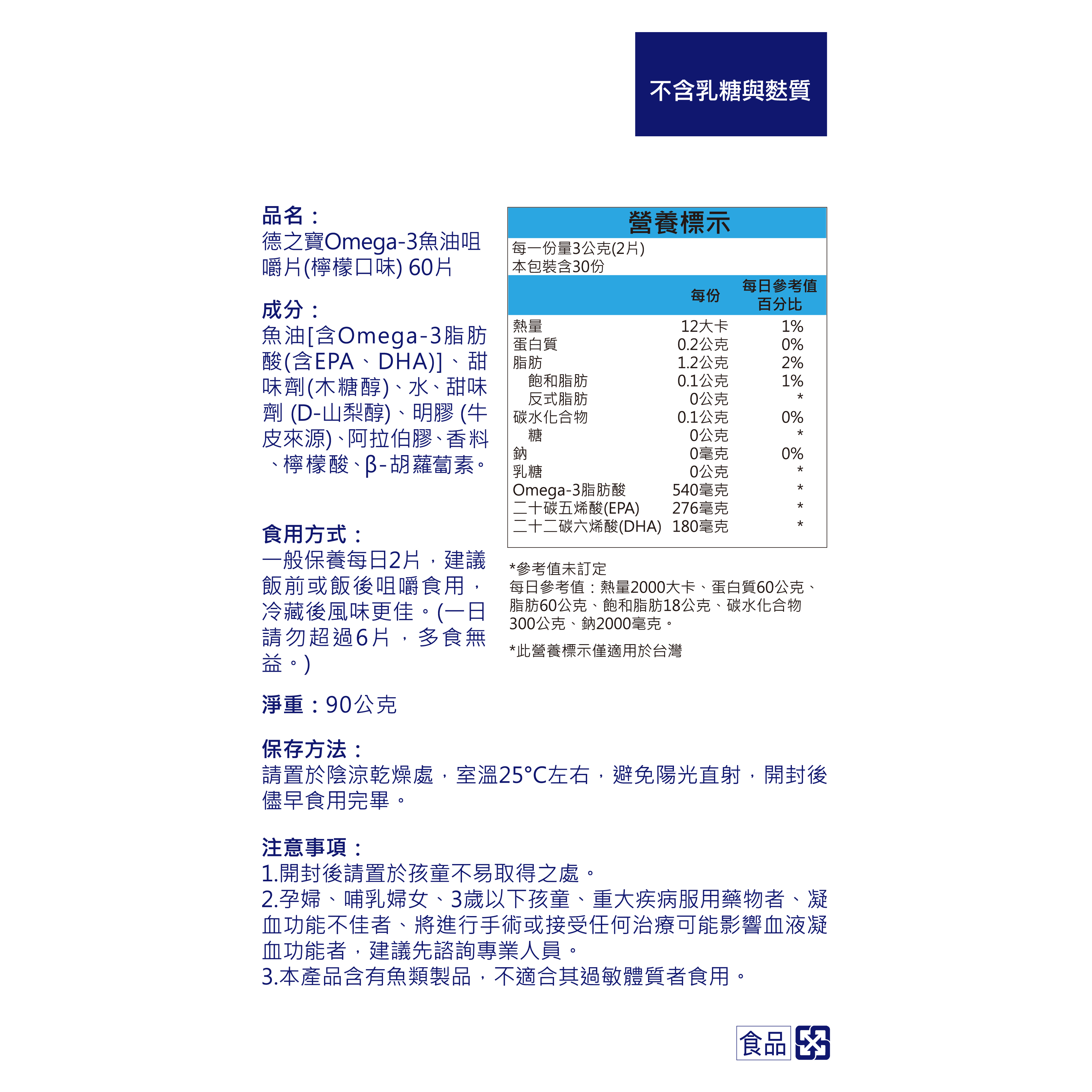 ◆ 每2片含有540mg Omega-3脂肪酸